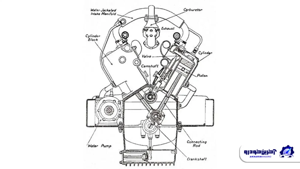 زاویه ۶۰ درجه و جابهجایی سیلندرها: این طراحی باعث شد شاتون ها مشترک باشند و موتور جمع و جورتر شود.