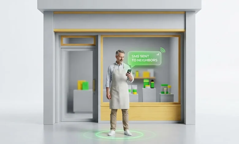 صاحب کسب و کار در حال ارسال پیامک هدفمند به مردم محلهصاحب کسب و کار در حال ارسال پیامک هدفمند به مردم محله