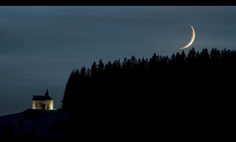 عکس روز ناسا هلال ماه را طوری نشان میدهد که گویی در حال بازی با یک کلیسای کوهستانی است.