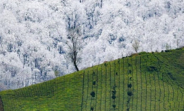 تقابل زمستان و بهار در باغ های چای، منطقه‌ی املش، استان گیلان