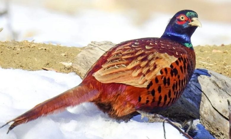 تصویری از قرقاول زیبای ایرانی در طبیعت برفی شهر راز خراسان شمالی مشاهده میکنید .