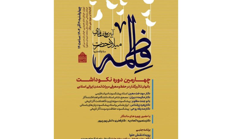 آیین «وقفنامهای میلاد حضرت فاطمه زهرا (س)» همراه با چهارمین دوره نکوداشت بانوان تأثیرگذار در حفظ و معرفی میراث تمدن ایرانی ـ اسلامی، در موزه ملی ملک برگزار میشود.