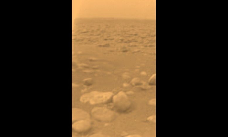 به نقل از ناسا، این صحنه توسط کاوشگر «هویگنس»(Huygens) آژانس فضایی اروپا در سال ۲۰۰۵ پس از فرود ۲.۵ ساعته در جو غلیظی از نیتروژن آمیخته با متان ثبت شده است.