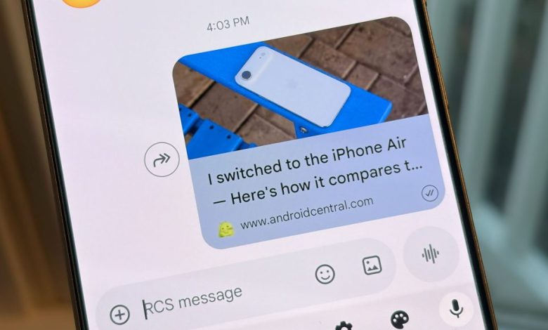 Google Messages اکنون بیشتر اطلاعات نمایش داده شده قبلی را حذف می کند، در عوض یک تصویر کوچک و عنوان بزرگتر را نمایش می دهد و URL دقیق پیوند را پنهان می کند. همچنان میتوانید URL عمومی سایت را در زیر عنوان ببینید. تصویر کوچک در زیر حباب نوشتاری ظاهر میشود، که همچنان به رنگ سایهدار است تا با مضمون Material 3 یا Material 3 Expressive شما مطابقت داشته باشد.
