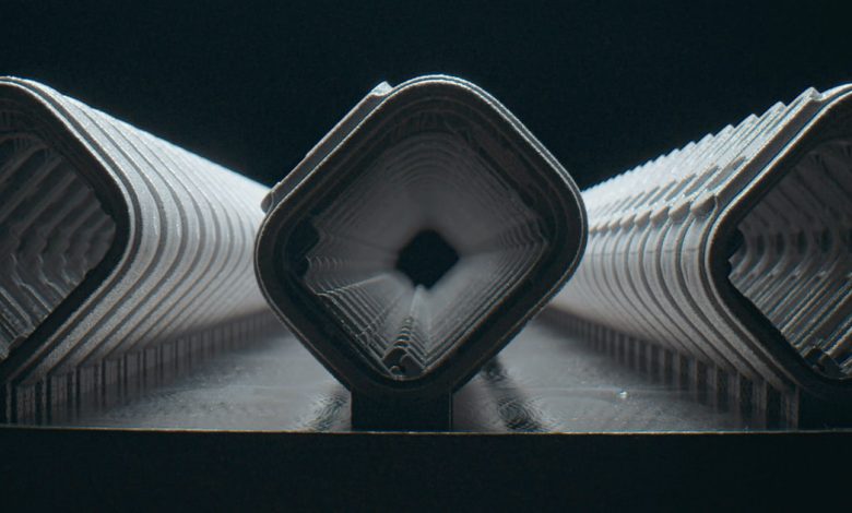 از بالا به پایین نگاه میکنیم، ردیفهایی از بلوکها مانند آسمانخراشهای سفید لگو از روی زمین بیرون زدهاند که روز و شب میچرخند. اینها پرینترهای سه بعدی هستند که سخت مشغول ساخت قاب های تیتانیومی برای Apple Watch Ultra 3 و Series 11 هستند.
